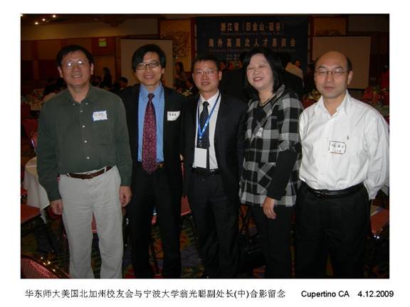 这次浙江-北美海外高层次人材恳谈会分为杭州分团,宁波分团,高等院校,科研院所,院区载体和企业单位六大块,四十多家单位。北加州校友会分别与高等院校,科研院所和院区载体等部门进行了交流,尤其与宁波大学的交流最为活跃和热烈。该校是一所涵盖文理工农医的综合性大学,1986年,由包玉刚先生率先捐资兴建。在这次恳谈会中,宁波大学所需学科方向带头人近30余名,学术骨干70多位,学科面广,涉及到国际贸易,法学管理,教育学,语言学,数学物理,材料工程,信息通信,土木工程,船舶海洋工程,海洋科学生物医学等十多门学科。宁波大学人事处翁光聪副处长就宁波大学的发展,人材的需求与各位作了详细地介绍,校友施婵英,喻凌云,李惠芬,陈炳良等参加了恳谈会。校友会与宁波大学进行了广泛的交流,就信息通信,金融财务的体制以及生物医学以及加强与海外学生学者多渠道,多领域方面的合作交流进行了探讨。在座谈中翁光聪副处长也逐一了解美国筹建公司的运作,各种协会的职能等。最后与翁副处长达成协议,在有可能的情况下,北加州校友会于明年将组团访问宁波大学。