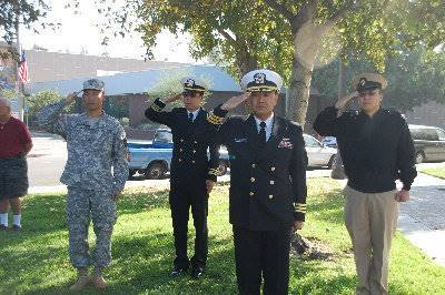 蒙市11日退伍軍人節活動上,(左起)陸軍中士司徒育鵬、海軍少校 陸唯、海軍中校方志榮、