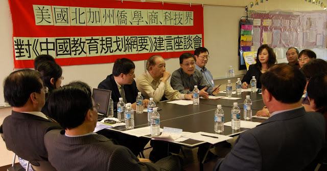 北京师范大学美西校友会,中国高校联合会等代表都在座谈会上畅谈了对中国教育纲要的建言。Recortec Inc. 公司董事长李心培,谢汉屏代表加州州议员马世云,美国少数族裔企业培训发展基金会郑其,来自清华大学,现在戴维斯加州大学任教的卫景彬,以及来自复旦大学,学无止境于73岁在美国获博士学位的陶友松等在座谈会踊跃建言。由于时间关系,赶不上发言的,包括华师大北加州校友在内的,还以书面材料呈交给会务的有30多份,希望透过此次座谈会让海外校友对中美两地的不同教育以及对国内教育改革的呼声传向中国教育部。