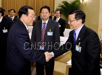 3月5日,中共中央政治局委员、全国政协副主席王刚(左)在北京全国政协礼堂会见了龚晋慷等列席全国政协十一届三次会议的海外侨胞。