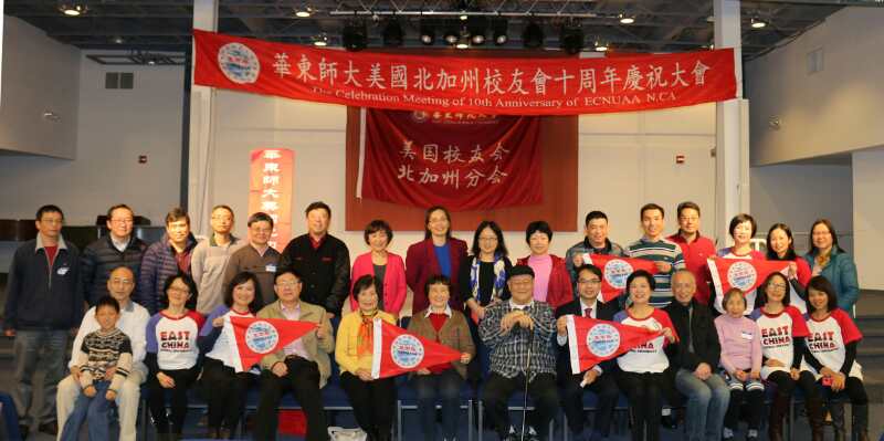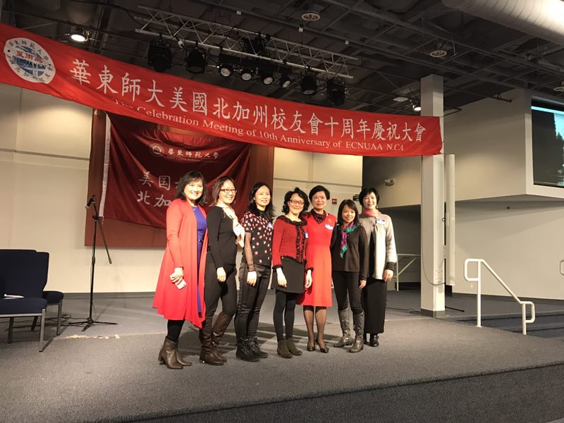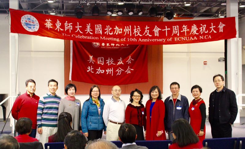 华东师范大学美国北加州校友会十周年庆祝大会于2016年12月17日在Palo Alto, Sophia University隆重举行, 近50 名校友和家属朋友参加,中华人民共和国驻旧金山总领事馆的教育领事曾阳先生和他的太太,女儿也前来参加庆祝大会。