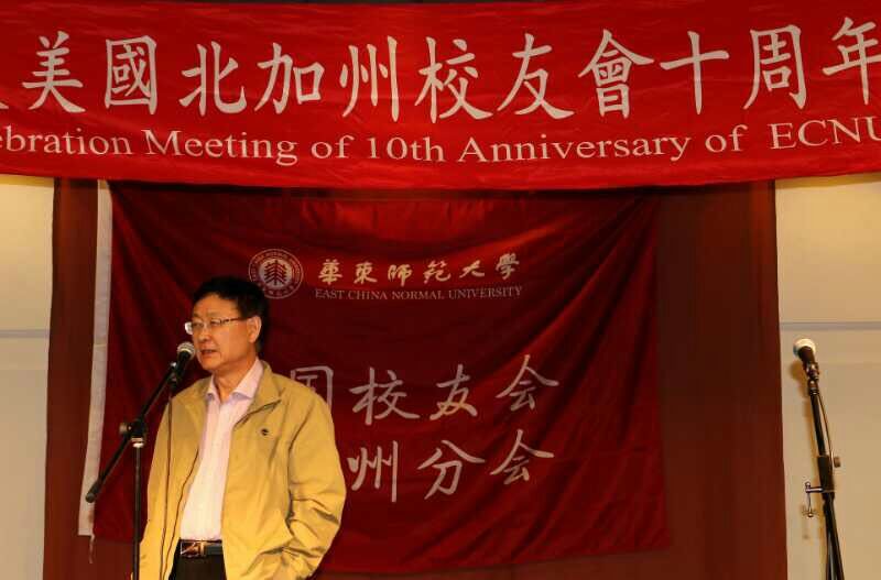 会议由会长张逸平主持, 校友吕诠老师给大家作了校友会10年来经历的总结发言, 特别提到我们的前会长陈炳良先生为校友会做出的杰出贡献。中华人民共和国驻旧金山总领事馆教育领事曾阳先生祝贺华师大美国北加州校友会成立10周年, 并且鼓励大家把校友会办得越来越好, 为中美的交流作出更大的贡献。到会的最年长的校友伉俪李振潼老先生和他太太冉女士也作了即兴发言。